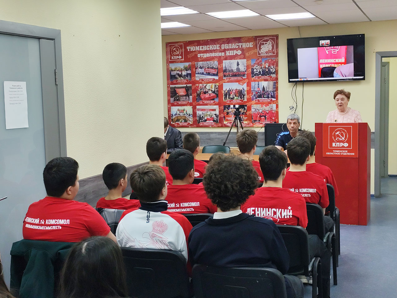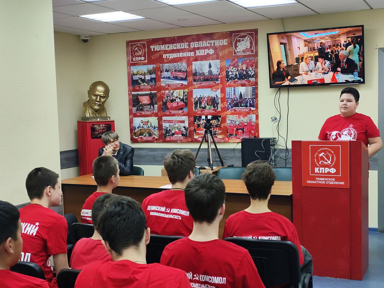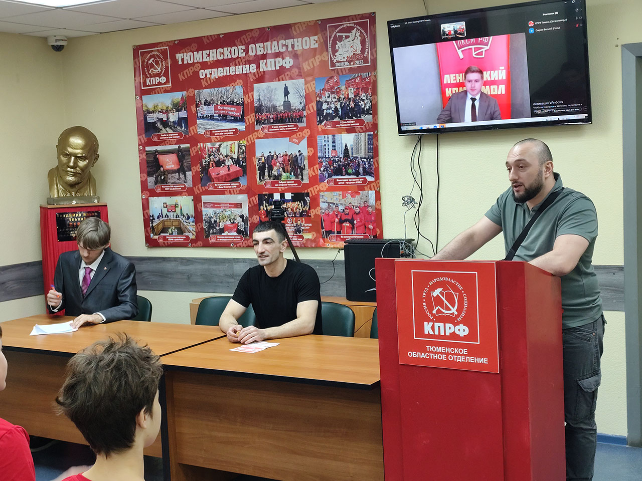 С приветственным словом к собравшимся обратилась лидер коммунистов Тюменской области Тамара Казанцева. Также в формате видеоконференции участников собрания поприветствовали комсорг по Уральскому федеральному округу Денис Курочкин и кандидат в члены ЦК Ленинского комсомола Виталий Озеров.