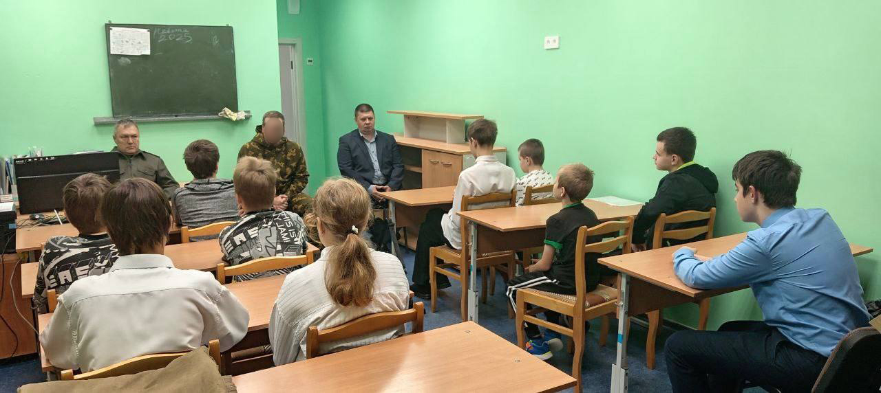 Перед ребятами выступил член КПРФ, участник СВО с позывным «Агроном», который сейчас находится в отпуске. На уроке также присутствовали: активист КПРФ Дмитрий Санников, а также супруга и мать участников СВО Ирина Б.