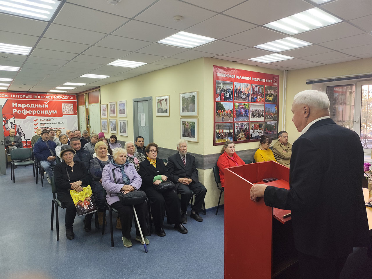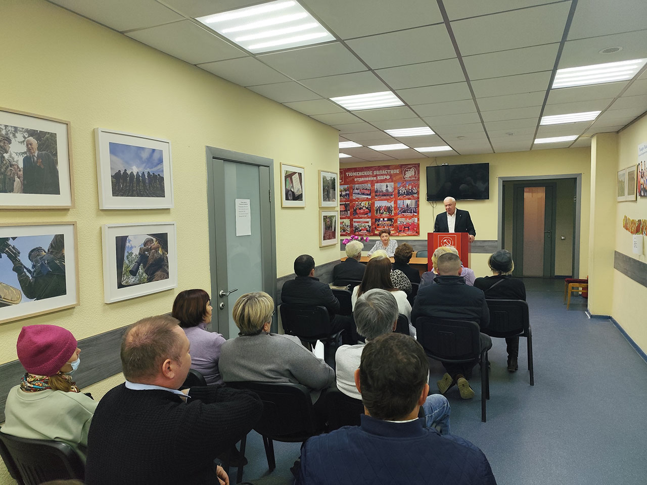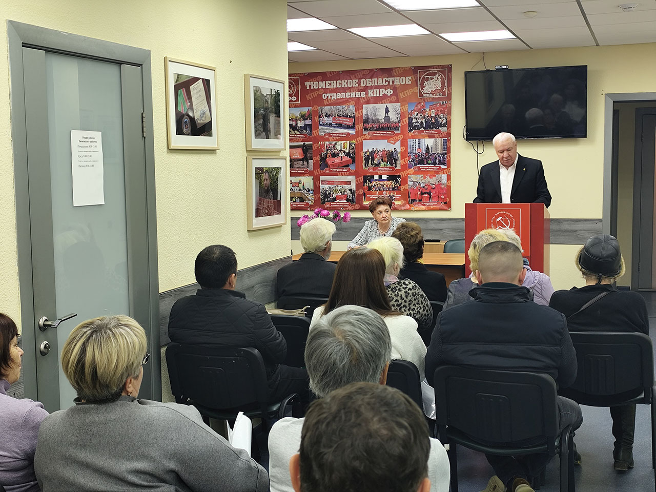 В рамках рабочей поездки в Тюменскую область депутат Государственной Думы от КПРФ, генерал-лейтенант Виктор Соболев встретился с партийным активом и сторонниками партии. Встреча прошла в помещении Тюменского обкома КПРФ.