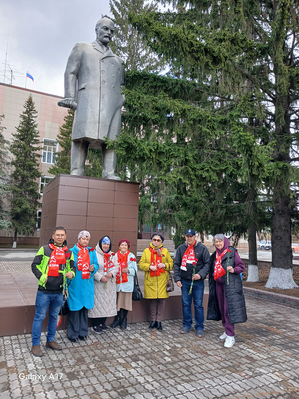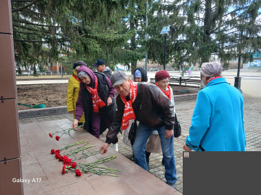 В прохладный солнечный полдень группа коммунистов собралась в центре города у памятника В.И. Ленину, чтобы, в честь 156-ой годовщины со дня его рождения, возложить к его подножию алые живые гвоздики.