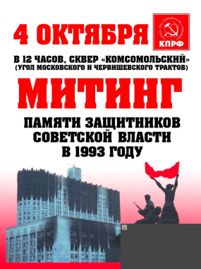 Приходите 4 октября в 12:00 в сквер «Комсомольский», чтобы вместе отдать долг памяти защитникам Советской власти.