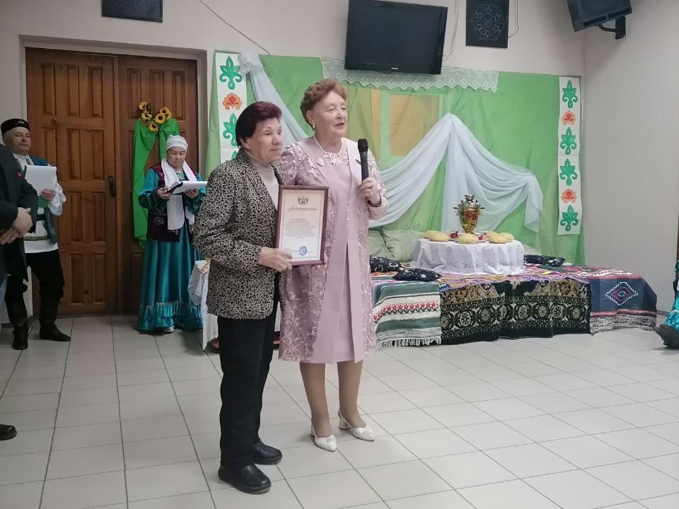 В торжественной части депутат вручила благодарности артистам: Кульмаметову Альберту, Смирных Надежде, Исмаиловой Руфине, Мустафиной Розе, поздравила собравшихся с днями татарской культуры.