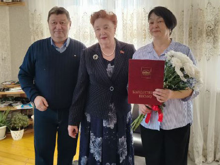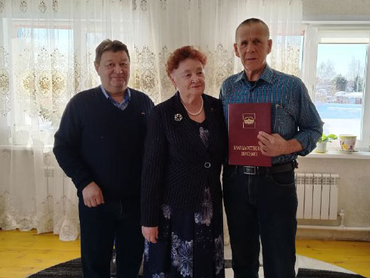 В первый день весны депутат Тюменской областной Думы Казанцева Тамара Николаевна встретилась с коммунистами деревни Загваздина и вручила Благодарственные письма жителям деревни Гарифуллиной Раузе Туктасыновне и Печеркину Александру Тимофеевичу.