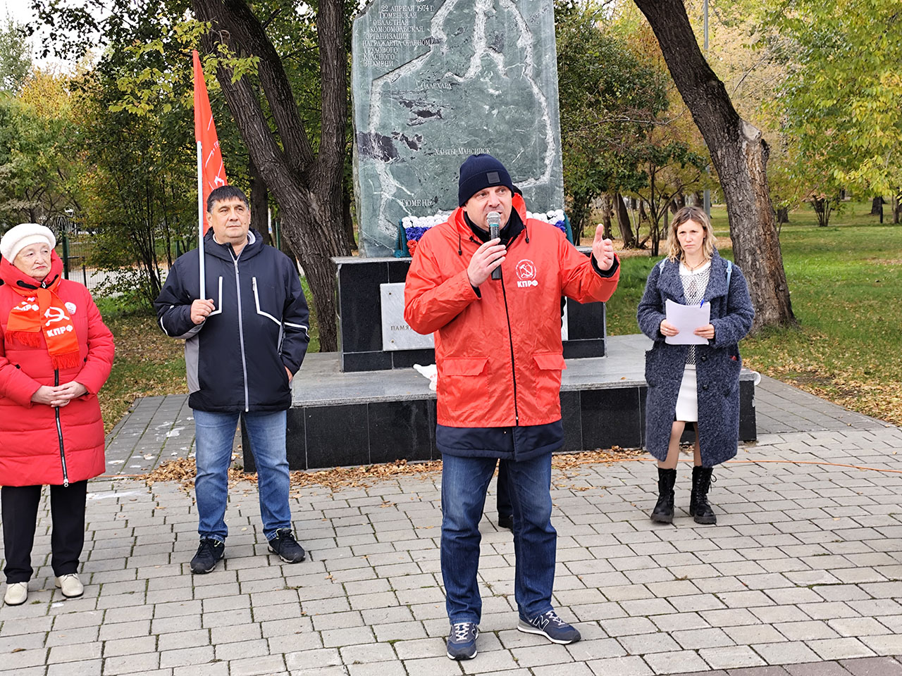 Митинг на Центральной площади у памятника В.И. Ленину коммунистам не согласовали под предлогом, что на этой площади будет проводить своё мероприятие «Молодая гвардия». И действительно трое представителей этой организации скучковались и просто постояли на площади. Коммунисты же вынуждены были провести митинг в гайд-парке, где согласование на проведение публичных мероприятий не требуется.