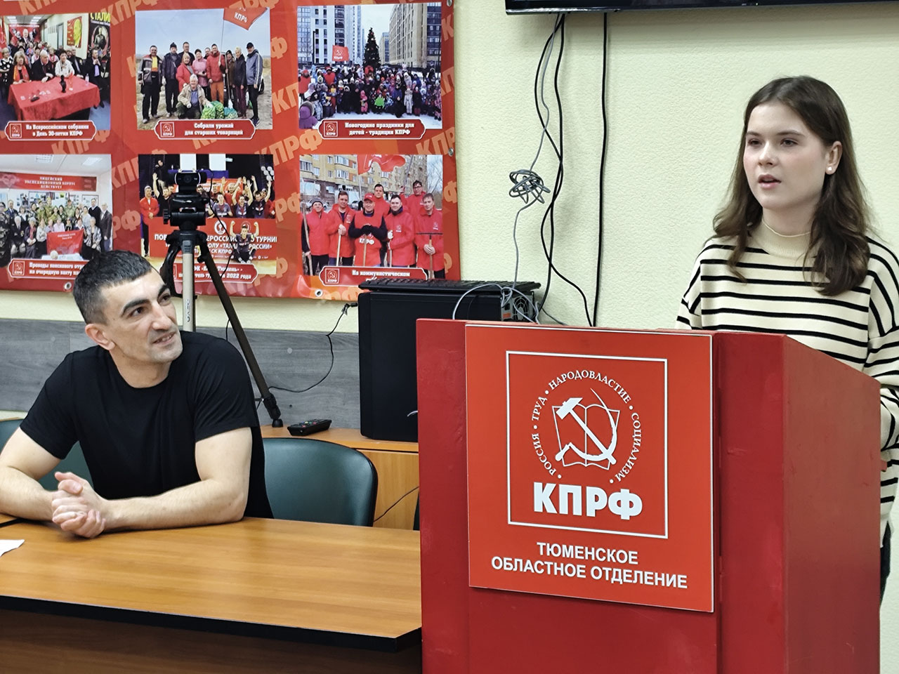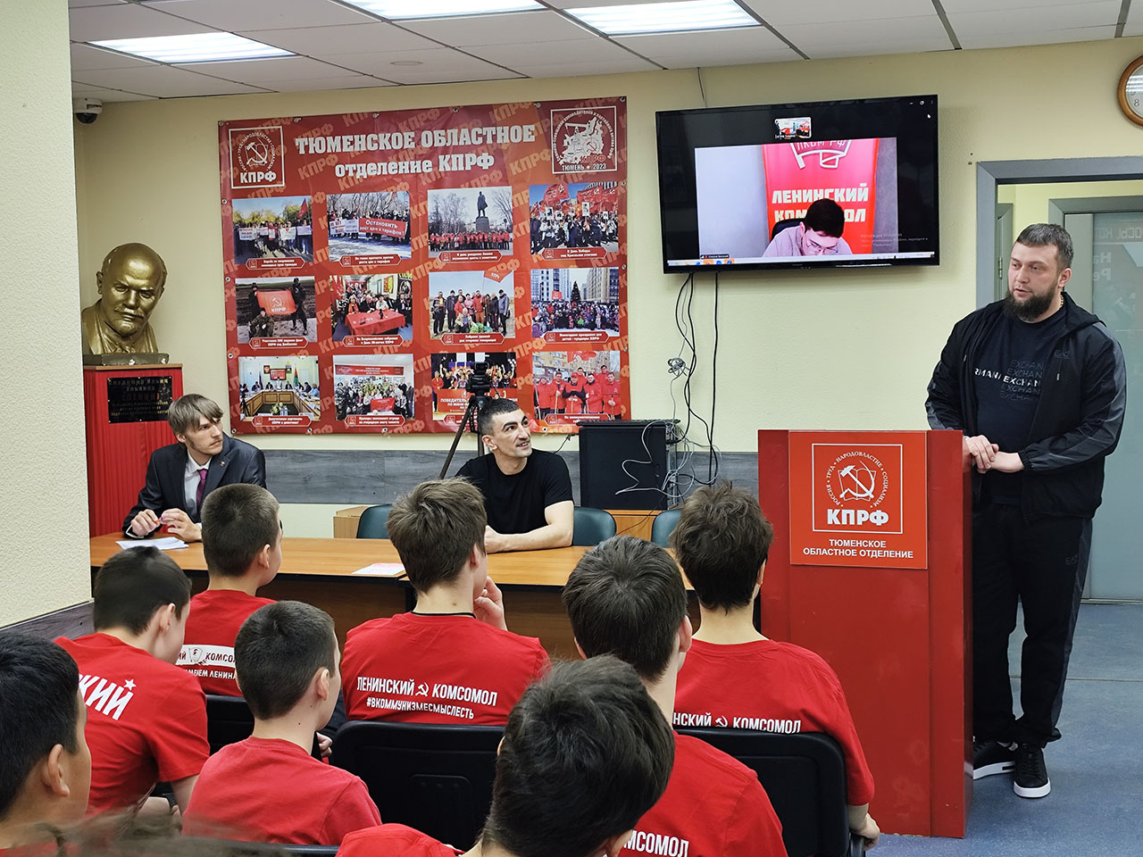 С приветственным словом к собравшимся обратилась лидер коммунистов Тюменской области Тамара Казанцева. Также в формате видеоконференции участников собрания поприветствовали комсорг по Уральскому федеральному округу Денис Курочкин и кандидат в члены ЦК Ленинского комсомола Виталий Озеров.