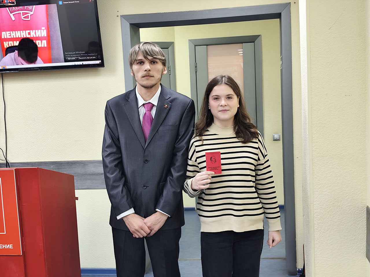 Кульминационным моментом собрания стало вручение комсомольского билета новой участнице организации. Торжественную церемонию прошла девушка, только пополнившая ряды ЛКСМ.