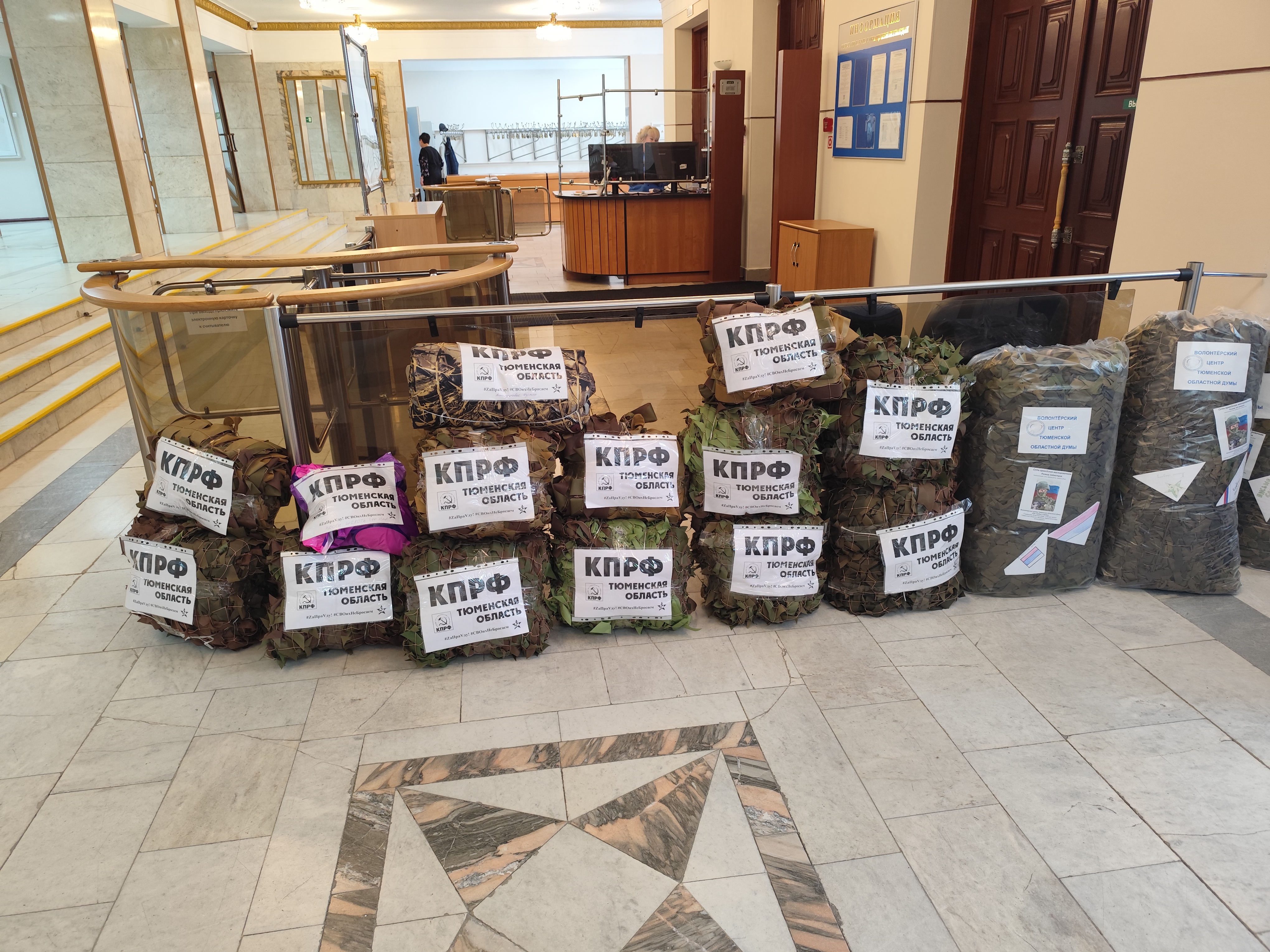 Коммунисты собрали 13 маскировочных сетей, 1 противодроновое одеяло, 15 окопных свечей, 10 шерстяных носков и госпитальные подушки. Всё это бережно собрано руками группы волонтёров из Тобольска, Тобольского, Вагайского и Уватского районов под руководством депутата Тюменской областной думы Регины Юхневич.