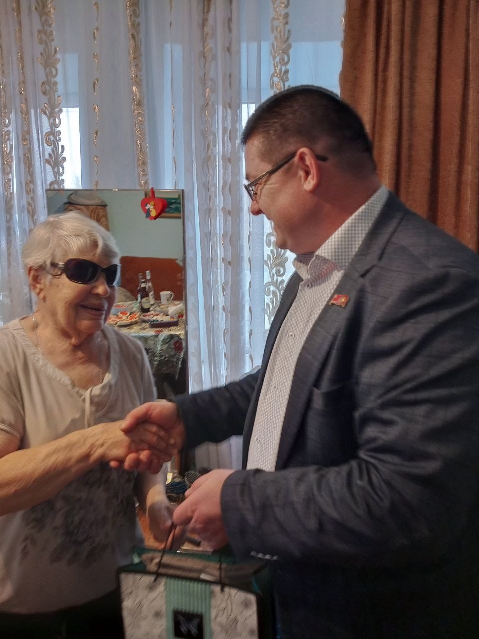 — Анна Николаевна Ролич, отметившая 75-летний юбилей, получила памятный подарок от партии.