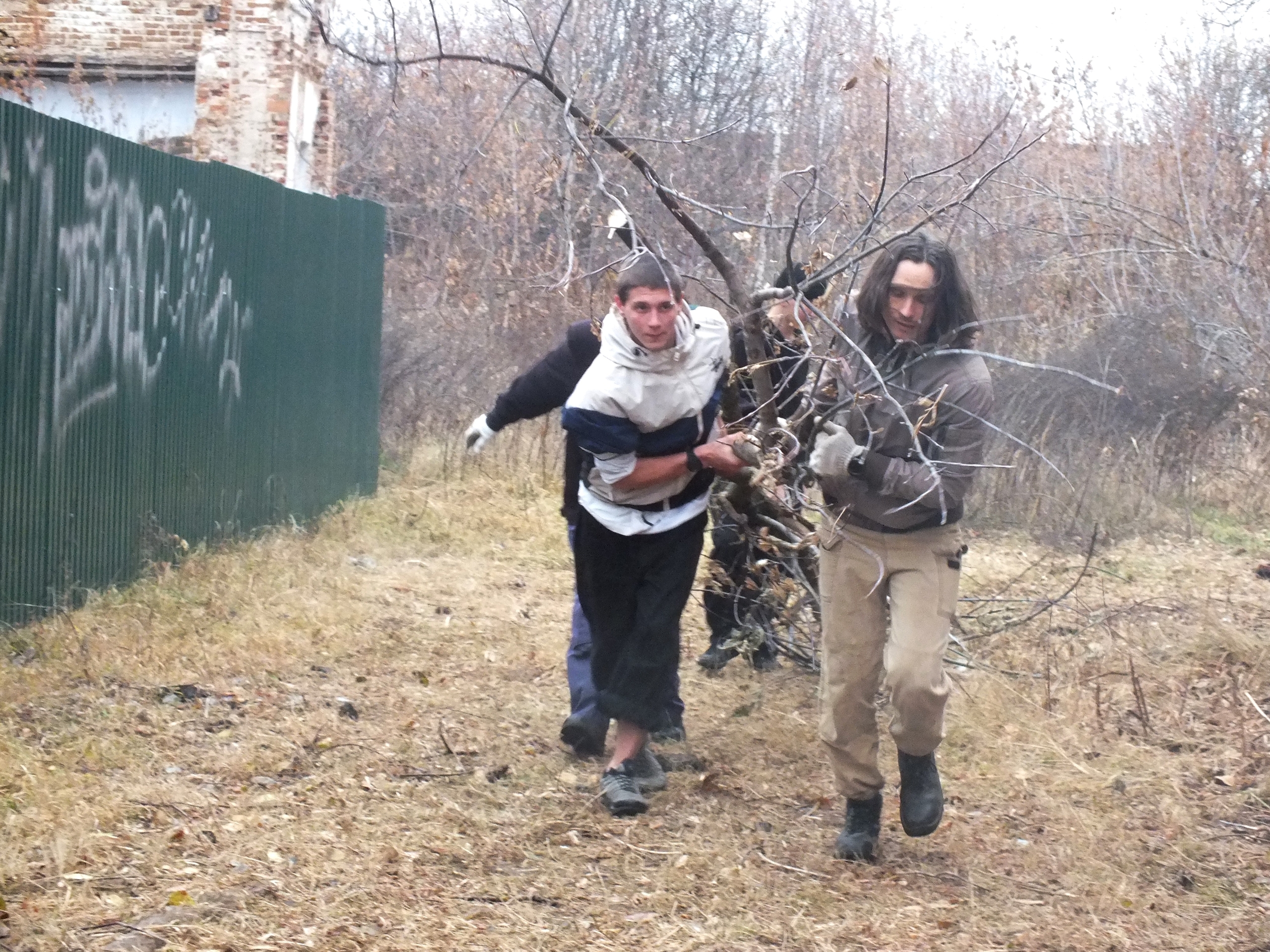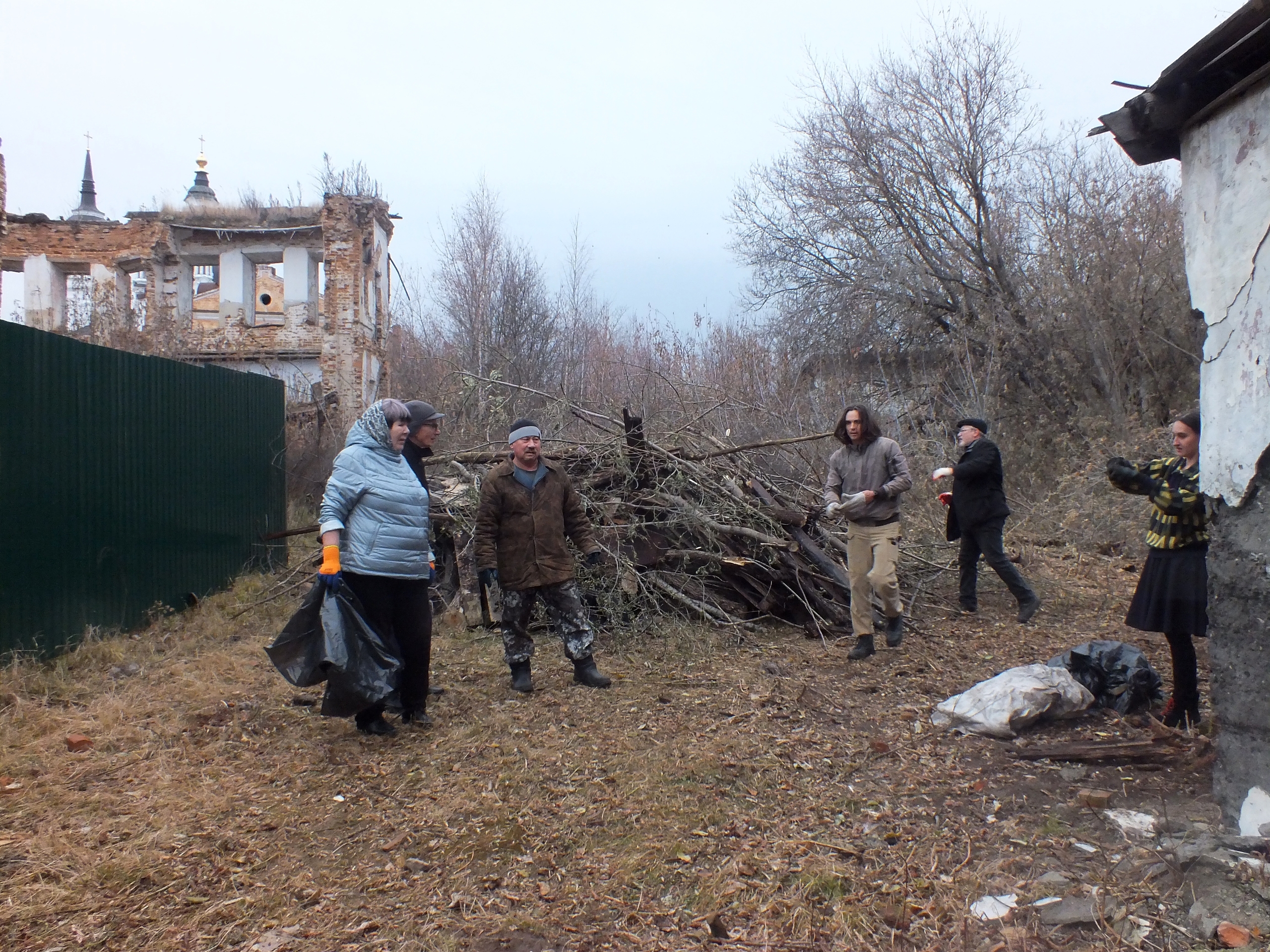 Несмотря на пасмурную погоду и утренний дождь, энтузиазм добровольцев не иссяк. К назначенному времени к месту работ собрались члены городской общественной организации «Добрая воля», активисты КПРФ и комсомольцы. К ним также присоединились старшеклассники из первой городской школы и местные подростки.