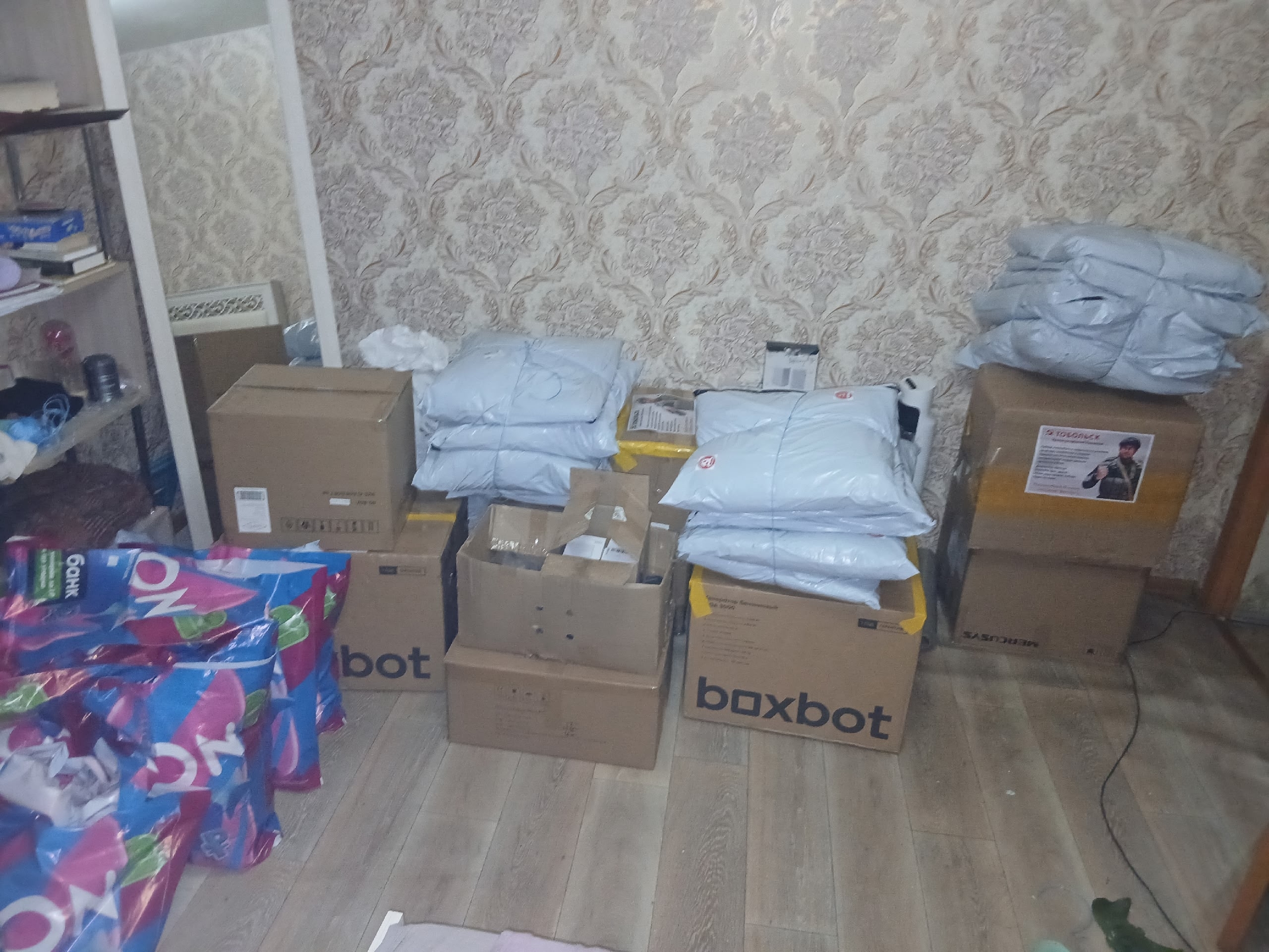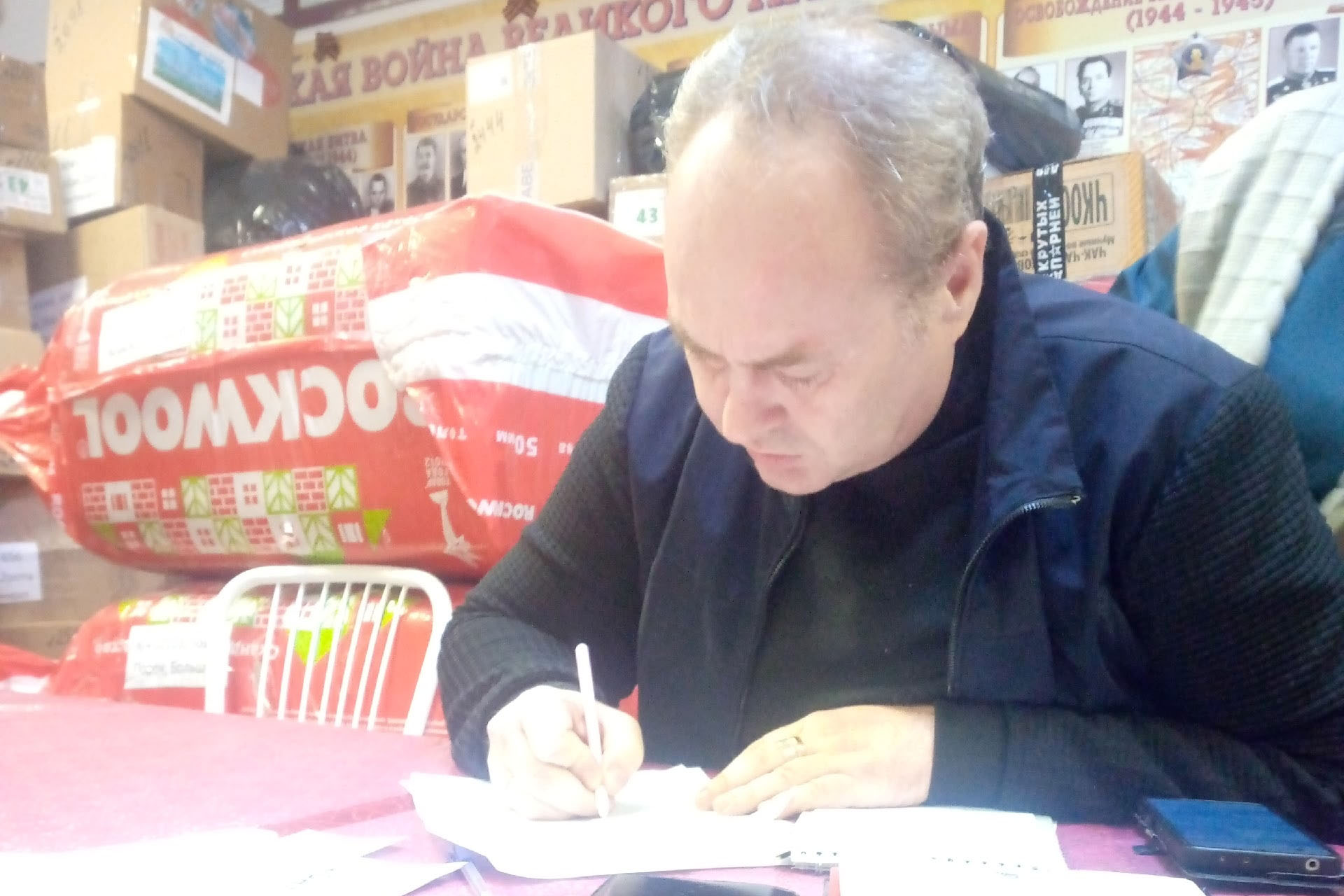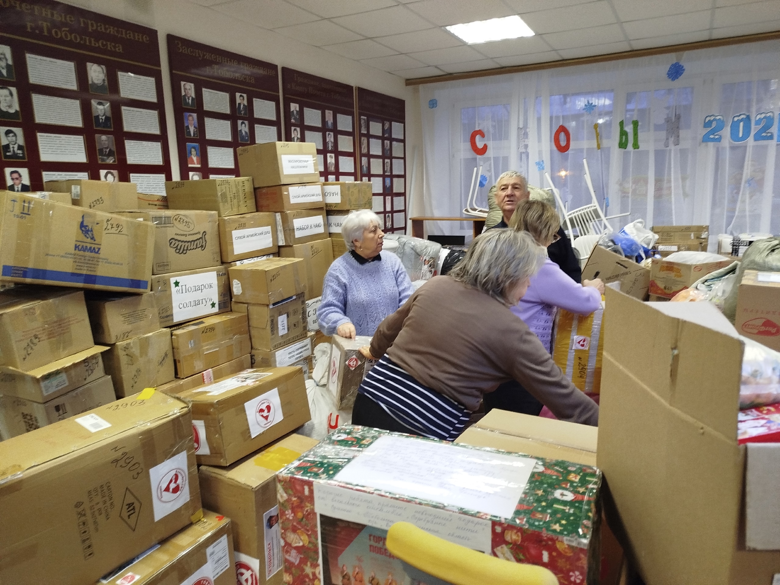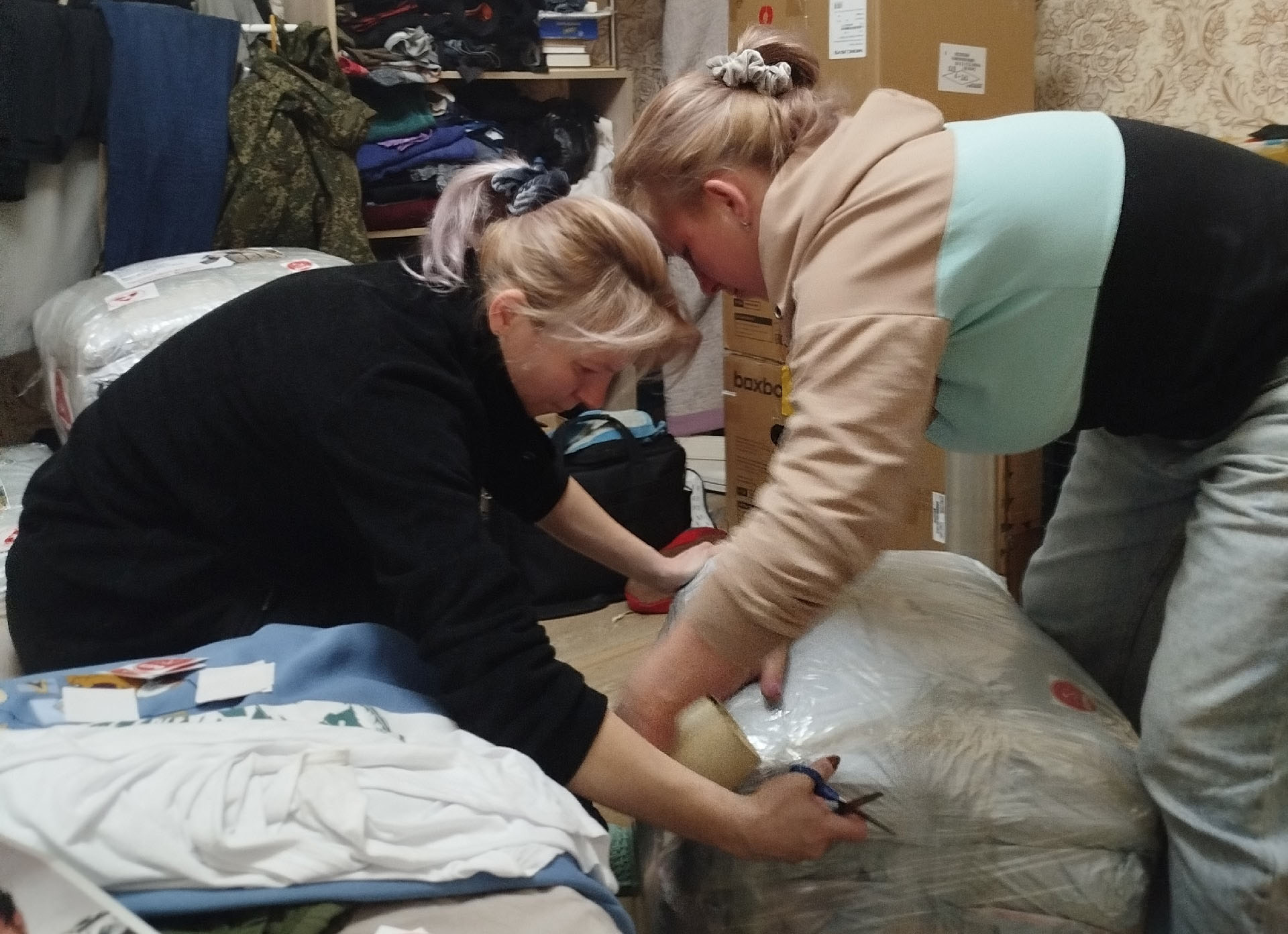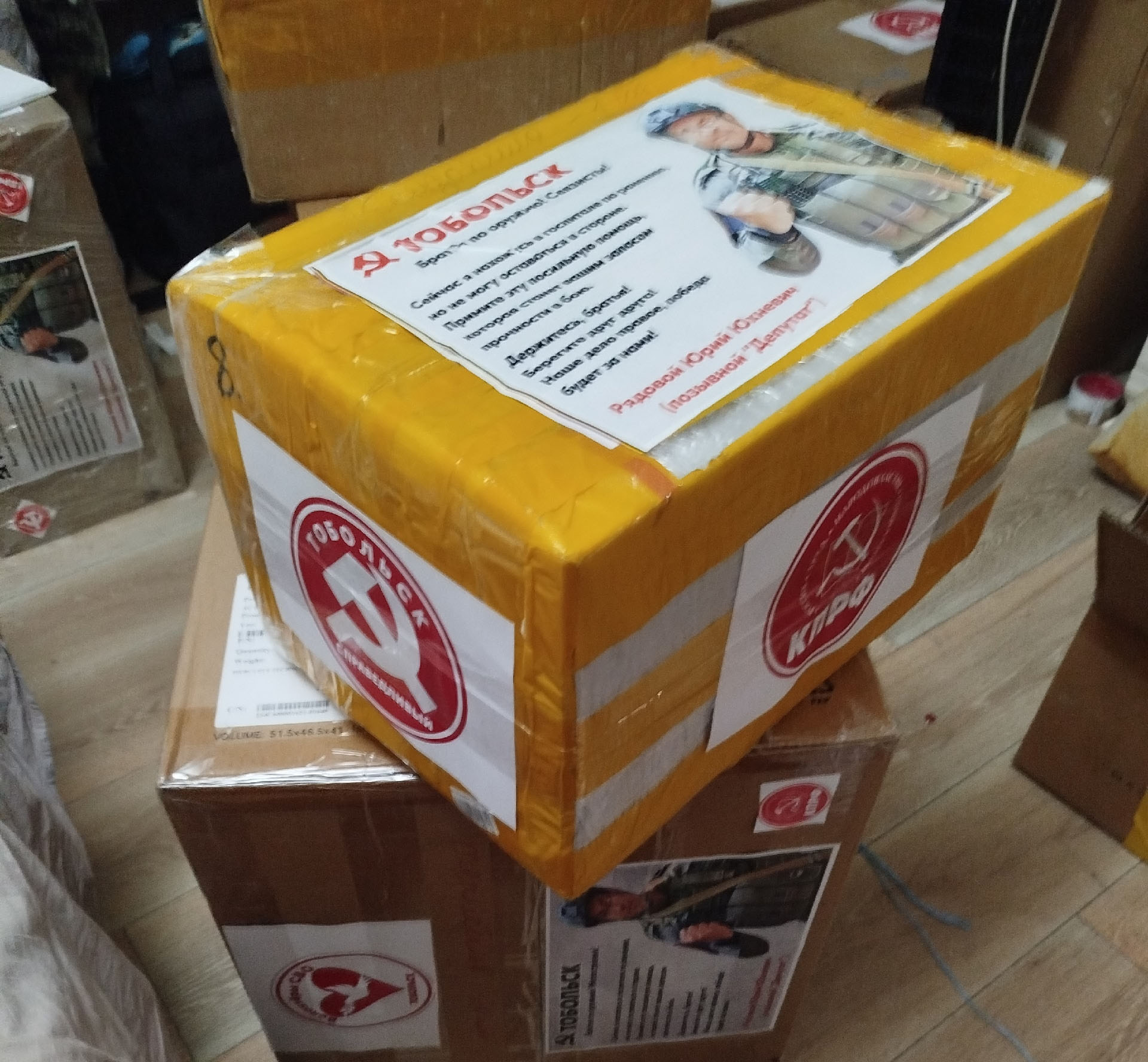 В процессе сортировки и упаковки груза активное участие приняли Анастасия Мунарева, Елена Демчук и Александр Казандаев. Каждая коробка была помечена символами организации в знак общей поддержки.