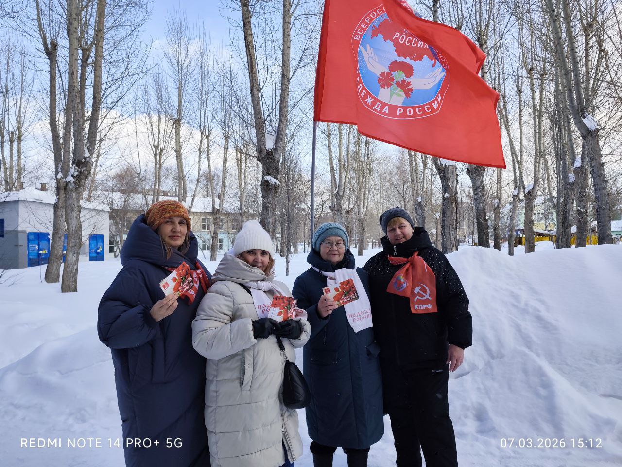 Затем активисты вышли поздравлять женщин на улицу. Женщинам вручали поздравительные открытки КПРФ.